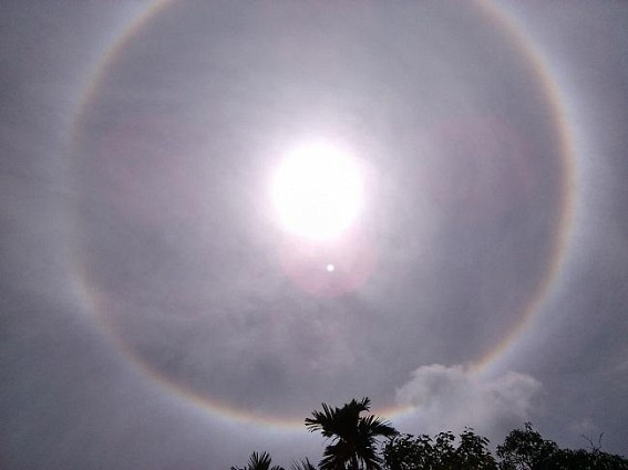But soon they revived their sense as someone saw a 'ball of clouds' surrounding the sun mixed with at least three colours of the rainbow. Soon the news spread everywhere and people too became curious to know what it really was. For sometimes though rumours spread about it having any religious reason connected with it. TIWN makes an effort to find out the truth. Scientific Officer of Gomati District Ayan Saha was immediately contacted. What he said is that it was nothing to do with anything superstitious or religious.