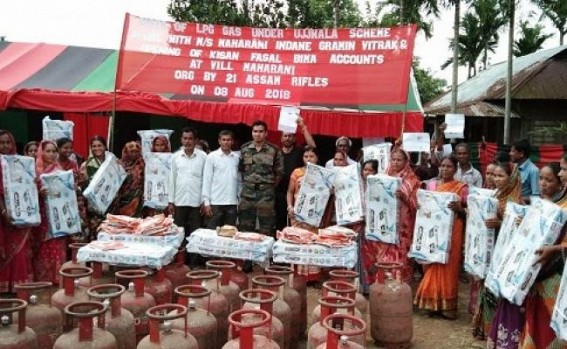 AGARTALA, Aug 8 (TIWN): Agartala battalion of Assam Rifles under 21 Sector of Inspector General Assam Rifles (East) facilitated distribution of Ujjwala Gas Connection by Indane Gramin Vitrak Gas Agency to BPL families in Garjee and Maharani villages of Gomati district on Wednesday. The event also facilitated Kisan Fasal Bima Accounts by SBI.