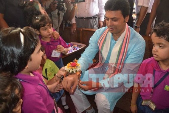 AGARTALA, Aug 26 (TIWN): Nursery school children have tried Rakhi to Chief Minister Biplab Deb on Sunday.