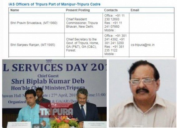 AGARTALA, Sep 7 (TIWN): Once again Chief Secretary's designation was listed at down in State Portal Secretaries' designation list. According to State Portal IAS officer Pravin Srivastava (1980 batch, who is now appointed as the CRC, Tripura Bhavan New Delhi) is now above the Chief Secretary and the second powerful Secretary is Chief Secretary. As Chief Resident Commissioner, Tripura Bhavan, New Delhi Pravin Srivastava’s name comes at the top and then Chief Secretary and four Add Chief Secretaries names are listed. Interestingly, tainted former Chief Secretary of Tripura S K Panda, back in 2014 while leaving state to join as the Add Chief Secretary in a Central Ministry, had recommended IAS officer Pravin Srivastava as the next Chief Secretary of Tripura, which triggered much controversy and Panda's recommendation was rejected. Even under former CM Manik Sarkar rather than appointing Pravin Srivastava as Chief Secretary honest officer YP Sing was appointed and the next and incumbent Chief Secretary Sanjeev Ranjan has also been spotless.