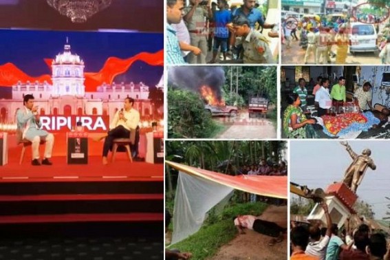 KOLKATA / AGARTALA, Oct 6 (TIWN): Tripura Chief Minister Biplab Deb faced hard questions on Saturday at Kolkata before National media during "India Today Conclave East 2018", when pressed by 'India Today' journalist on CM's image from 'Internet-Mahabharat era, Diana Hayden beauty' and inquired further on Panchayat Poll violence allegations under BJP ruling. Even though along with 5 political murders, Tripura first time has undergone "Mob-Lynching" under Biplab Deb's era, but when 'India Today' journalist Rahul Kanwal raised the issue, Biplab Deb declined any political murder, any physical attack in his state since 7 months. Being asked by Rahul Kanwal in the conclave about 96% uncontested Panchayat election seats' forceful winning allegation in his state, Biplab Deb has strictly denied any violence in Tripura saying "Nobody can say a single political murder in my Tripura" under BJP ruling, amid five CPI-M activists were brutally killed in Tripura in last 7 months. Tripura's 5 big political murder victims in last 7 months are : (1)Abdul Kadir, (2) Tapas Sutradhar, (3) Rakesh Dhar, (4) Pradip Deb Barma, (5) Ajendra Reang.