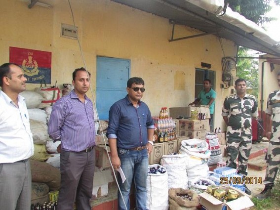 SONAMURA, September 25 (TIWN): In a first ever joint raid on Rahimpur market located in close vicinity of the Indo-Bangla Border, where a well-entrenched smuggling racket is known to have been operative with relative impunity for long, a huge amount of contraband articles like Phensedyl Syrups, illicit Foreign Liquor, Sound-crackers, Bangladesh-made cigarettes, etc. were recovered today, the total market value of which is more than 10 lakh rupees.