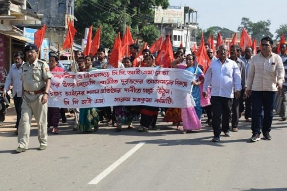 SABROOM, Nov 19 (TIWN): Voicing against the ongoing statewide violence of BJP, attacks upon opposition, CPI-M leaders, supporters organized a massive rally here in Sabroom Sub-Division under South District.
