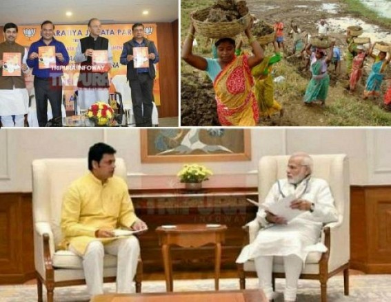 Those pre-poll days led by BJP leaders were simply to tell lies with the people of Tripura forgetting about the promises it gave during the election campaign . PM Narendra Modi, BJP National President Amit Shah , Sunil Deodhar and almost all the national and state leaders said on that time ,"Once BJP comes to power our govt. will put the thieves of MGNREGA fund behind the bars( aagar BJP sarkar bantihai to hum MGNREGA ke jo fund luterahain , un sab ko jail ko salakhonk epiche dalenge . " But soon after coming to power BJP seems to have been cheating with the people as the current govt does not have any intention to hand over MGNREGA scam into the hands of CBI .