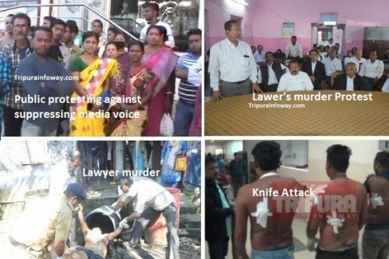 AGARTALA, Nov 30 (TIWN): Tripura’s worst era of daily murders, crimes continue as Police Dept failed to function under pressure of corrupt politicians. Law and Order situation has been further worsening under the Biplab Deb and gradually police have degraded as servants of RSS, BJP’s wings to harass common men, attacking media and to safeguard criminals which is not only affecting the lives of common men but also public losing faith on Police Dept. After a deadly knife attack, attacks on common men and the opposition have been increasing and media cells which dare to raise voice against the ruling party’s misdeeds are under severe attacks as police is mostly targeting journalists old parents and harassing them by entering home with huge team of police force. Hence now after continuous attacks upon journalists now, lawyers are under row of being killed. After a brutal murder of Tripura advocate Pradip Modok, S/O- Late Promod Ranjan Modok, lawyers of Bar held a condolence meeting at the West District Court in Agartala, expressed concern on the law and order situation, demanded proper investigation and justice to the victim and his family. When crimes are on spike, fake propaganda about Good Governance are on peak by Chief Minister Biplab Deb.
