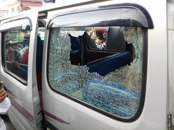 PHOTO : BJP's attack on former Minister Manik Dey's vehicle at Ranir Bazar. TIWN Pic Dec 1