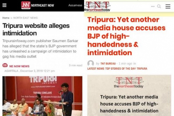 However, when state govt has denied the allegation, the news media has referred the recent attack took place on a daily newspaper “Daily Desher Katha” which was shutdown by force by the District Magistrate followed by one of the BJP Minister’s open challenge to the newspaper about the consequences, which was however couldn’t be successful due to High Court verdict in favour of “media”. Another leading Northeast media TNT also published the news condemning Govt's attempt of intimidation to media, but when TNT asked, SP West denied that he didn't do any such offence. However, a legal case has been filed against the SP. According to High Court’s order, in any case, publication of a news media can not be stopped.
