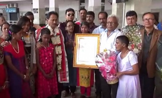 PHOTO : Abhoy Mission returns in Agartala Airport with award from Delhi. TIWN Pic Dec 7