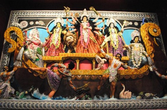 AGARTALA, September 30 (TIWN): The biggest festival of Durga Puja started across Tripura with religious pomp and gaiety. Thousands of devotees throng in front of all major puja pandals from the day of Sashti. However people already started thronging in to the Puja Pandals on Panchami night. On Mahashasti, the face of the Goddess is unveiled on Mahasasthi. With the unveiling of the idol, starts "Kalparambho", where the main ritual is "Bodhon" It is followed by "Amontron" and "Adhibas" sanctifying the place where Durga and her four children-Lakshmi, Ganesha, Saraswati and Kartik will reside for the next four days in the puja pandal. On the other hand, this year Durga Puja will be celebrated at 2335 places in Tripura including 1023 pujas in urban and 1312 pujas in rural areas. In the city near more than five hundred puja pandals had been decorated. Among them in West district the number exists to 723, Khowai-280, Gomati-265, South-251, Sepahijala-200, Unakoti-160, Dhalai-229, North-195.