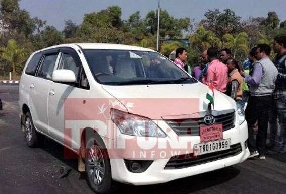 PHOTO : Minister Mebar Jamatia's vehicle hit a biker. TIWN Pic Feb 6