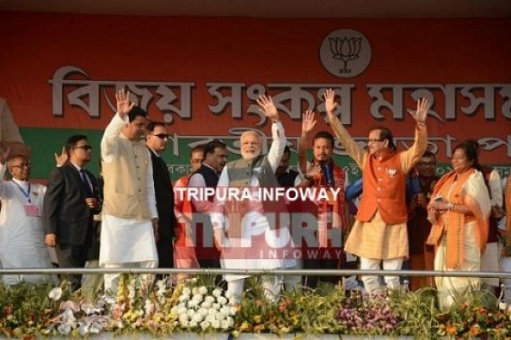 AGARTALA, Feb 7 (TIWN): Narendra Modi likely to play same JUMLA tune of Biplab Deb who infamously claimed that 50% vision document already implemented in past 10 months which is contrary to reality as Tripura’s mass sufferings from all fronts continue from rape/murders, police shootings to record high unemployment. Ruling BJP’s pre-poll promises are yet far from fulfilling amid Lok Sabha election knocking doors. However, Prime Minister Narendra Modi is completing his first stage’s visit in Tripura and a massive rally to be organized at Astabal stadium on February 9. But as it has shown as a Govt programme so the fund will come from State’s own pocket. Till day, pensioners didn’t get their hiked wages, massive starvation, poverty have gripped the state, unemployment either nationally or in state is record breaking, Vision Document is left untouched but Modi is aimed to bloom here lotuses. In Tripura’s history such a JUMLA programme was never organized where IIIT will be inaugurated in a big field. In a circular given to schools it has been said that except 1 or 2 teachers, all teachers should come to Modi’s rally on that day.