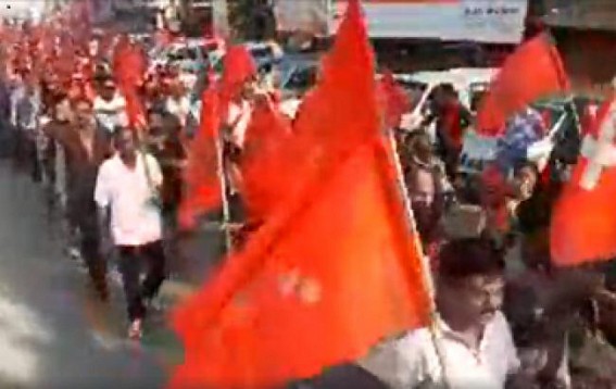 A massive protest rally was organized here in Agartala from Melarmath by CPI-M activists raising slogan of ‘Jumla-Budget by Modi-not accepted’.