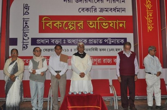 AGARTALA, Feb 16 (TIWN): Marxist economist and political commentator Prabhat Patnaik on Saturday has lectured on the importance of Marxism and Karl Marx’s economic theories, claiming capitalism increases unemployment problems always and exactly that is happening in our state. CPI-M has organized the conference to put a stress on the importance of Communist or Marxist in India’s economic development right now. The programme was conducted at Rabindra Bhawan in the presence of former Chief Minister of Tripura Manik Sarkar and other top CPI-M leaders as Tapan Chakraborty, Gautam Das, Bijan Dhar, Aghore Debbarma. Addressing in the conference, Prabhat Patnaik said, “Capitalism even though an exploratory but nobody can create capitalism system for others. It is a self driven system and you have to overthrow this system from your mind. There is no freedom in capitalism and neither the capitalist himself is free. Capitalism is controlled by capitalists tendency inside a person. Thus if you are serious about freedom, if you are serious about overcoming poverty, if you are overcoming unemployment, then you have to chose Marxismâ€.He further blamed the technology’s introduction in each sector for increasing unemployment.