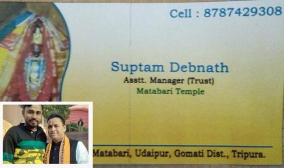 AGARTALA, Feb 20 (TIWN): One Saptam Debnath, under BJP leadership has become self-announced assistant manager of Udaipur Tripura Sundari Temple.