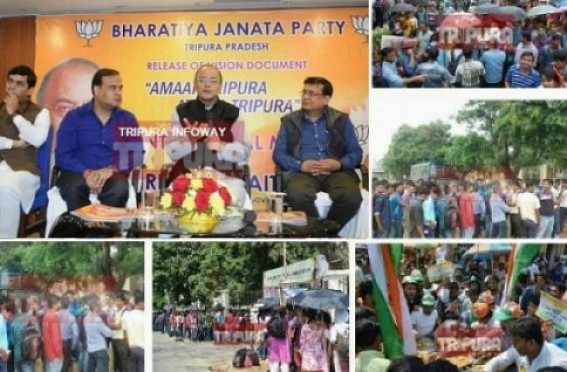 AGARTALA, Feb 21 (TIWN): Pre-Election JUMLA is the main reason for BJP’s Assembly Election Victory as Saffron party cheated Tripura Public via false promises. 50000 Govt jobs will be given in first 1 year of Govt formation, was promised by Union Finance Minister Arun Jaitley, Assam Minister Himanata Biswa Sarma, Ashok Sinha. Biplab Deb and Sunil Deodhar assured no unemployment, missed call jobs etc etc but the BJP Govt is now shamelessly silent on those promises except lectures on “cow rearingâ€. Instead of recruiting, all the existing jobs under the Left Govt was cancelled by the BJP Govt. Tripura Public Service Commission (TPSC) website which has been unemployed youths eye-centre for decades have published only 5 notifications in last four months (November, 2018 to February, 2019) but with an irony all the notifications were subjected to reminder of postponing or cancellation of jobs.
