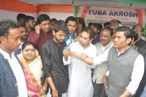 AGARTALA, March 4 (TIWN): Youth Congress on Monday has broken 24 hours hunger strike which they started on the occasion of BJP’s first anniversary in Tripura.