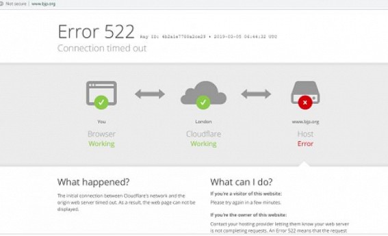 New Delhi, March 5 (TIWN): Ahead of Lok Sabha Election, BJP's official website was hacked on Tuesday. The webpage www.bjp.org showed Error 522 message.
