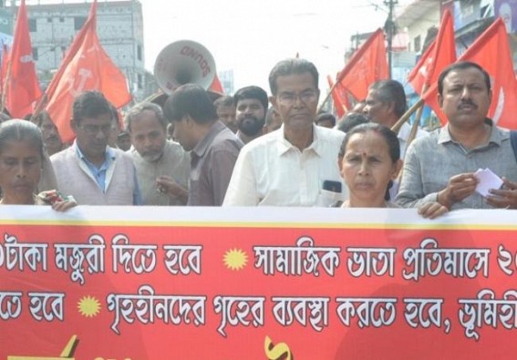 “Before the election 200 days of works, 350 rupees of wage was promised. Now, when we proposed in the Assembly to hike wage and mandays, under majority power, the Govt cancelled that proposal”, said Bhanulal Saha.Today, CPI-M had launched a massive protest with 6 demands from the State Govt regarding wage hike, pension hike, mandays hike, land and house allocation.