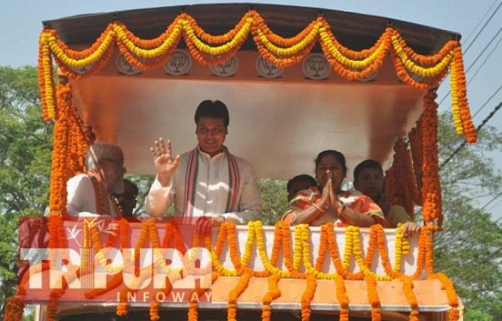 AGARTALA, March 26 (TIWN): Few hours after Dhanpur massive violence led by Pratima Bhowmik’s hooligans under her brother Biswajit Bhowmik and 1 day after her rival CPI-M MP Shankar Prasad Dutta was attacked by BJP, Pratima Bhowmik while proceeding with her road-show at Ranir Bazar said, “We are living in Independent Tripura (সà§à¦¬à¦¾à¦§à§€à¦¨ তà§à¦°à¦¿à¦ªà§à¦°à¦¾) and you ask the communist also, there is no violence in this state now. In last one year, we are able to breathâ€. She cited Ujjwala Yojna, Ayushman Bharat projects as Modi’s “Achhe Dinâ€. Bhowmik further criticized the MPs of CPI-M saying in previous years before the election nobody knew that Tripura really has MPs. “Earlier we heard India is poor country whereas now Modi Govt has reduced poverty and all sections of people are living in a certain standard as Modi Govt could give various facilities to poor successfullyâ€, she added. Not only this, she further said that people got the “Freedom of Expression†right which is their fundamental right. Her Freedom of Expression claim came after attacking various media houses, opposition and in example Tripurainfoway (TIWN) is here. In case of TIWN not only journalists, editor’s parents were harassed but the Agartala newspaper office was closed, the website has been blocked in India. In all intrigues Pratima Bhowmik was the mastermind which is now confirmed from reliable source.
