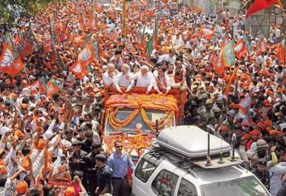 AGARTALA, April 7 (TIWN): With a shocking revelation it was known that at least 95% of the total funds used by various political parties went to BJP giving a simple calculation of Modi’s expenditure for election campaigning from FM radio to govt projects.The data was referred by CPI-M General Secretary Sitram Yechury while addressing in a political rally at Agartala on Saturday.Addressing in Lok Sabha Election campaigning in Agartala said, “Narendra Modi who claims himself as the Chowkidar of the country in reality is a Sleeping Chowkidar, whose work is to dream each night and to tell everyone a new story out of itâ€. Hitting BJP on its Communal Politics, Yechury said, “Today country need NITI not NETA and thus to restore democracy vote for Left candidates. In Modi era, lowest numbers of Parliament days were counted which shows the Modi Govt is not at all interested to answer to the oppositionâ€.