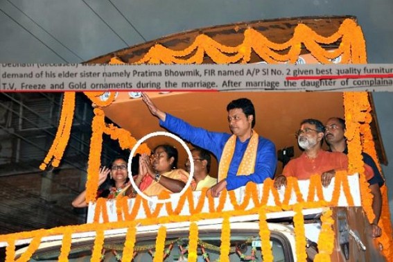 AGARTALA, April 9 (TIWN): When BJP has represented a criminal figure in state politics like Pratima Bhowmik, many leaders including Chief Minister Biplab Deb are trying to boast that BJP is promoting “Nari Shakti†via Pratima Bhowmik’s nomination in the MP Election. But police report has exposed, it has been Pratima Bhowmik’s family tradition to take dowries from bride’s father and in case of Pratima Bhowmik’s smuggler brother Biswajit Bhowmik’s marriage, hefty amounts were taken from the bride Chabi Debnath’s father Sunil Debnath including Television, Freeze, best quality’s furniture, gold ornament etc. Now question is will such a leaders who received dowries from her brothers’ in-laws families, how can she represent Tripura in the Parliament ? Infact the court report accepted that there were brutal mental and cruel tortures on Chabi Debnath which was worsened when Biswajit Bhowmik started an illicit affair with own brother’s wife.
