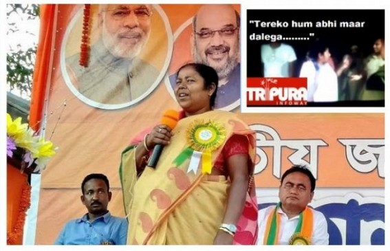 AGARTALA, April 16 (TIWN): Criminal Pratima Bhowmik’s grave crimes including murders generated public, shocks, discussions and Election Commission’s silence on Rape of Democracy raises only one question. Is this democracy ? Is this independent India where we talk about “equality†? Election Commission was reported about BJP MP candidate Pratima Bhowmik’s murder threat to IPS Officer Kiran Kumar but no action yet has been taken against her, rather she is doing undisrupted election campaigning across East Tripura, whereas national leaders’ like Yogi, Mayhawati’s election campaigning have been stopped. The BJP MP candidate was exposed recently for her open murder threat to an IPS officer also came in controversy for various illegal speeches amid mode code of conduct, but her campaigning goes undisrupted as Election Commission and Police have not taken any action against her.