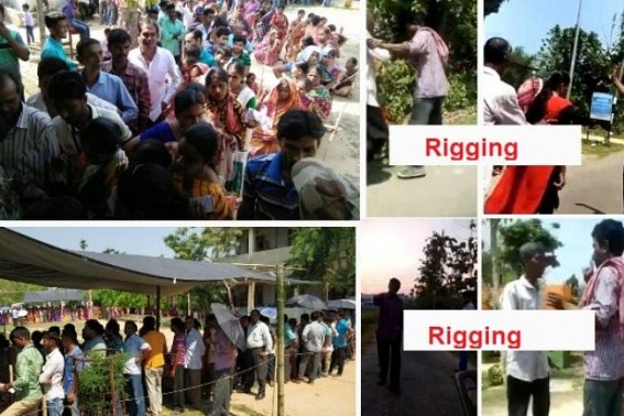 AGARTALA, April 23 (TIWN): Over 79 percent of the total 12.5 lakh voters on Tuesday cast their ballots in the deferred polling for the Tripura East parliamentary constituency, earlier Tripura touched a record of 90% in voting rate. Lakhs of voters could not cast votes and video footage of election rigging have been sent to Special Observer Vinod Zutshi. Tripura CPI-M sitting MP Jitendra Chaudhury himself could not cast votes to secure lakhs of voters votes. Various footage like some people spotted carrying a large number of fake voter cards in Hawaibari, Teliamura, In booth No. 33, Sabroom constituency, Public statements that they were stopped from casting their votes, footage of voters prevention. Polling agents of CPI(M) were Threatened, not to go to their respective polling stations. It has been known that 30 polling stations were almost captured by BJP at Hrishyamukh as no CPI-M and opposition polling personnel were allowed to enter there. Various BJP supporters polling agents were arrested across Tripura. "After the final reports from all the polling stations received, the polling percentage might touch 80 per cent. In 2014, the voting percentage in the Tripura East parliamentary seat was around 85 per cent," an Election official said.