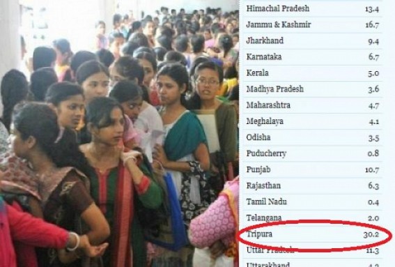 AGARTALA / NEW DELHI, June 2 (TIWN): BJP’s 15 months misrule causing toll of heavy unemployment in Tripura as per latest CMIE Data. With record national toll of unemployment rate in past 45 years, tension is heaviest in state Tripura as consistently Tripura has scored as topper in the unemployment rate. The most concerned matter is that Tripura’s unemployment rate which was 24.6% in April month according CMIE report, in May month it has shot up to 30.2%. Under the previous Leftist Govt also unemployment rate was highest but it was limited at 11%. According to May, 2019’s data of CMIE Chandigarh, Haryana’s names come in the unemployment list after Tripura at 18%. Tension also erupted as amid massive unemployment ongoing in Tripura, Govt of India has released data that the unemployment rate is increasing at the national level without a pause and 6.1% which is indeed highest in last 45 years. However, with the new cabinet formation usher of hope is there that there will certain solutions in coming days.