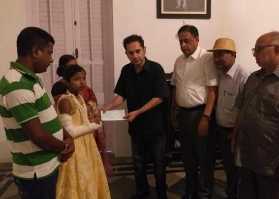 PHOTO : Pradyot Manikya handingover a cheque to post poll violence victims. PC : Prdayot Manikya.
