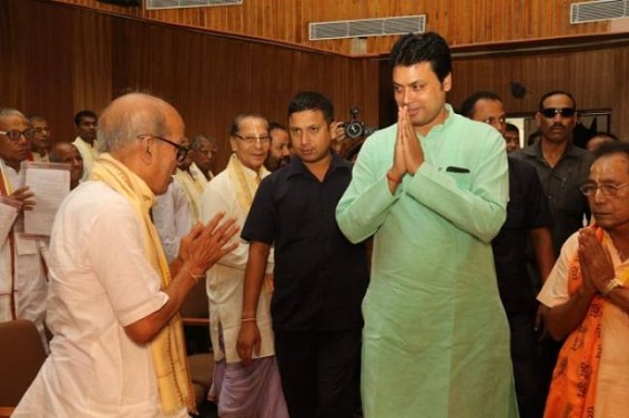AGARTALA, June 9 (TIWN): “Landslide victory of Modi Govt has proven there was no anti-incumbency against the Government of India which is ruling the country since 2014. Prime Minister Modi never forced people for Hinduism, neither he preached for forcible worshiping of any religion, but he gained public trust and along with Sab-Ka-Sath, he achieved Sabka-Biswasâ€, said Tripura Chief Minister Biplab Deb while addressing in a Hindu religious conference at the capital city Agartala. Biplab Deb said, India is such a country where a King like Ashoka converted into Buddhism but those who kept on claiming for long 70 years about secularism could not win against Modi Govt because their secularism was fake, unable to understand the culture of India. “They called religious faith is “Ku-Sanskar†(superstitions) but what our (BJP) ideology has been to keep up the “Sanskar†by removing “ku†(bad culture). “In Madhya Pradesh, Uttar Pradesh so many attempts were done to strike Modi’s ideology and political parties aligned to gain all types of religions’ faiths but it did not help them to defeat Modiâ€, said Biplab Deb.