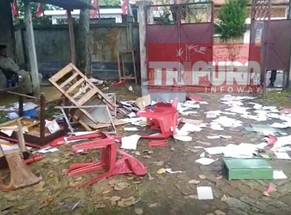 AGARTALA, July 7 (TIWN): Followed by a BJP vs. BJP clash at Dharmanagar, North Tripura BJP hooligans have attacked on CPI-M party office at there.