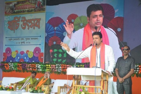 AGARTALA, July 10 (TIWN): Tripura Chief Minister Biplab Deb on Wednesday has challenged the previous CPI-M Govt to cite a single example of State led massive scheme under its 25 years regime, like BJP led State Govt’s thousand crore’s Atal Jal Yojna scheme. Addressing at Kharchi fair at Chaturdash Devta temple in Khayerpur (Old Agartala), Biplab Deb said, social pension like schemes are not at all schemes of state govt, where BJP Govt has also increased Rs. 300 but state sponsored big scheme is 'Atal Jal Dhara Mission' which was started in last year to ensure water supplies to each home of Tripura. “This water project worth Rs. 1000 crores. I will not fight election or submit forms for election if they (CPI-M) can show a single scheme which has been launched by themâ€, added Deb. He further criticized the previous Tripura Govt led by Communists for propagating 25 years infrastructure development, where all infrastructure were done by central Govt’s fund. Deb asked, what State itself could create under Communist regime without help from Central Govt, it’s important to know before crediting them ?