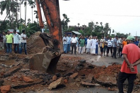 AGARTALA, July 17 (TIWN): Almost by force Tripura's Gomati District's Udaipur Municipal Corporation’s former members were given resignations and Municipal corporation went in BJP leaders’ hands, but for common men the problems of the town instead of solving, it has increased. In Vivekananda Palli area, under Municipal Corporation members’ indirect hands allegedly all drains were covered up for a section of people's personal benefits which has led massive flood in that area. People are unable to come out of homes for 4 days. Now to fix the situation instead of recovering the drains, the Municipality has taken attempt to build a culvert under the national highway which has left the national highway paralyzed leading public suffering. Vehicles are bound to take another route for passage and passengers are charged with extra fares. DM to all high rank officials attempted to investigate the matter but when they came to know that this task is done by BJP leaders, there was no action so far. How without permission, a national highway can be damaged which is not even under a State Govt ?