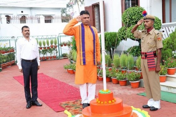 AGARTALA / NEW DELHI, Aug 15 (TIWN): Chief Minister of Tripura Biplab Deb has unfurled national flag in his official residence in Agartala and then at the Assam Rifles ground.