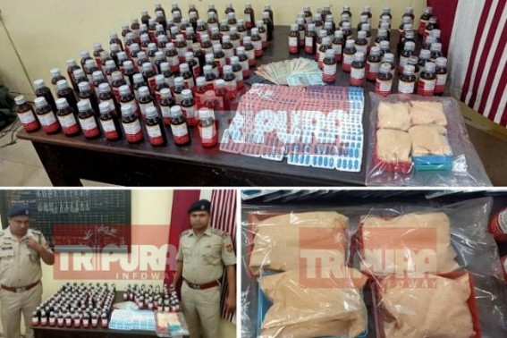 AGARTALA, Aug 18 (TIWN): In another major success West Agartala Police have seized huge amounts of contrabands from a house and successfully traced the drug-smugglers and search operations begins to hook the criminals. The raid was done at Malakar Para of Lankamura at the outskirts of Agartala. 50 gram brown sugar, 136 cough syrup, 1 packet yaba tablets and huge numbers of other tablets were found, but the criminals managed to escape from the spot when police reached the spot but already searching network of police is active and West Agartala police told media that shortly all the smugglers will be arrested. Also, huge amounts of cashes were found through the raid.