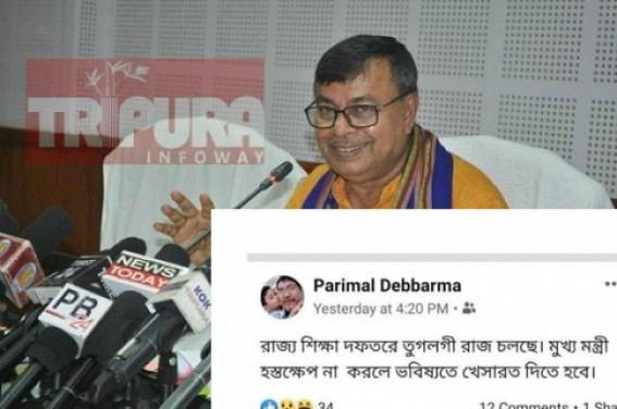 Parimal Debbarma said in social media, “A Tughlaki raj going on in the education dept. In future all have to answer for that”.