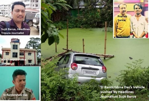 Kanchanpur SI Ramkrishna Das said to TIWN & other Medias that “Since few days, one Headlines Tripura Journalist named Sujit Barua was demanding Rs. 40,000 to Rs. 50,000 from me in phone and also face to face. Then I asked the purpose and he said that due to Durga puja coming ahead I have to give him the money. Then I told him, there is no reason to give him money and GD entry was done under the knowledge of OC and SDPO. I was going to Srirampur and Sujit Barua saw me and called me in phone. He said, he wanted to talk to me. I avoided him but when I was towards Srirampur on that time 3 persons gave me signal and I stopped there and suddenly one Tom Tom met an accident with me and immediately few people gheraoed me and threw my car in the water-body, snatched my phone”.