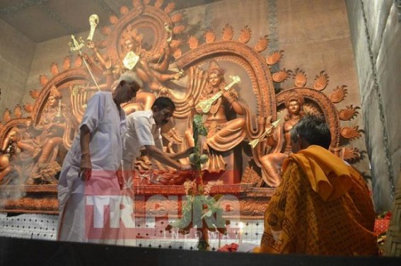 AGARTALA, Oct 4 (TIWN): Festival days throughout Tripura has kicked off on Friday as much awaited Durga Puja started with ‘Maha Shashthi’, the day which is believed as Goddess Durga’s arrival on “Marta Lok†(earth). Across the state, specially in urban areas’ each corner sound-boxes have put in high volumes with Bengali songs with Durga puja theme, although in Tripura Hindus, Muslims and all communities regardless Tiprasa and Bengali jointly celebrate these days, which fall in Govt holidays till Laxmi puja. From Agartala Durga Bari to all clubs have observed Shashthi puja in the morning marking a beginning of auspicious Durga puja. Although, Astami is considered as the most auspicious day among 5 days of Durga puja, Maha Sasthi is perhaps the most important day during the Durga Puja. History related to Maha Sashti is on this day Lord Rama’s had worshipped Goddess Durga in order to relief Devi Sita from Ravana’s captivity. Sasti is the sixth day of Durga Puja where the face of Devi Durga is “unveiledâ€.