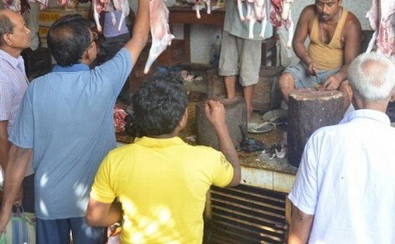 AGARTALA, Oct 8 (TIWN): The “Pathar magsho†or mutton which is still popular item in Bengali culture, drew massive gathering in front of the meat shops today at Agartala.