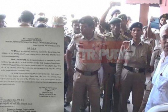 AGARTALA, Oct 19 (TIWN): Amid top Police Officers sought justice for suspended colleagues instead of removing issued punishments just because opposition MLA Badal Choudhury could not be traced in a total politically motivated case, the BJP Govt has continued suspension of more police officials. When whole state is mocking at the Govt’s immature behavious with own staffs, resentments among the police forces spiked up as even today one more high officials was suspended named Banuj Biplab Deb Dy SP (HQ), TPS. In a notification issued by Animesh Das, Deputy Secretary of the Govt notified the suspension with “immediate effectâ€. The notification No-F 35(24)-GA(P&T)/12 Govt of Tripura, says, “The competent authority in exercise of power conferred by subrule (1) of Rule-10 of the Central Civil Services (Classification, Control and Appeal) Rules-1965 hereby places the said Banuj Biplab Das, TPS Grade-II Dy SP (DIB) West under suspension with immediate effectâ€.