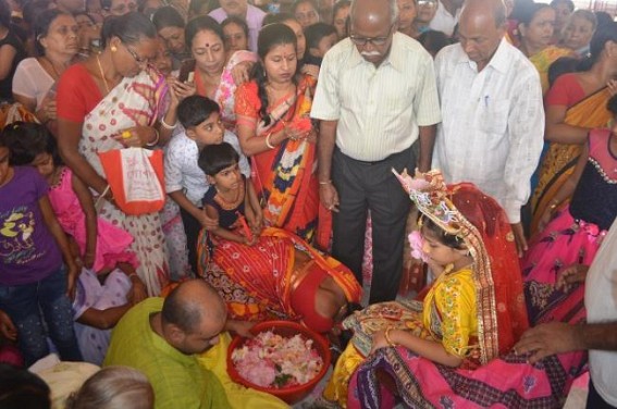 Sanskrita Chakraborty is worshipped on the occasion of Kumari puja at Indranagar Kali temple