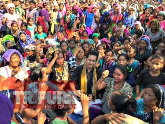 AGARTALA, Nov 6 (TIWN): All Opposition leaders, Social Activists are visited starving Bru agitation spot, welcomed their protest for ‘Right to live’ and ‘Food Safety Act 2013’. Today Tripura’s Prince Pradyot Deb Barman has visited the Bru led road blockade at Asharambari where many have become ill and 6 persons including a child breathed their last. Meeting the Brus, Pradyot Deb Barman said that nobody has to go back to Mizoram. Despite of condemnation statewide by common men, human rights activists, media and all opposition parties, the State Govt yet to resume the ration supplies to their camps, which was shutdowned from October 1st, 2019 and 6 persons died due to that. Today around 500 women along with their children were seen on agitation against the inhuman decision of scrapping free ration supplies. Such critical situation was never emerged with Brus in dispute with the Govt of Tripura. The BJP led State Govt continues to push the Brus whose surnames are maximum Reang to Mizoram back whereas after few families physically travelled for Mizoram experienced horrifying outcomes and unwelcoming attitude of the Mizoram Govt. The given promise was not even filled to satisfy the needs of the Brus and in this situation after 22 years of refugee like lives, the Brus have demanded to stay on the soil of Tripura as many children, youths are among them who born here. So far, no development in this matter and State Govt is not interest to hear anymore plea of the Brus, said various reports.