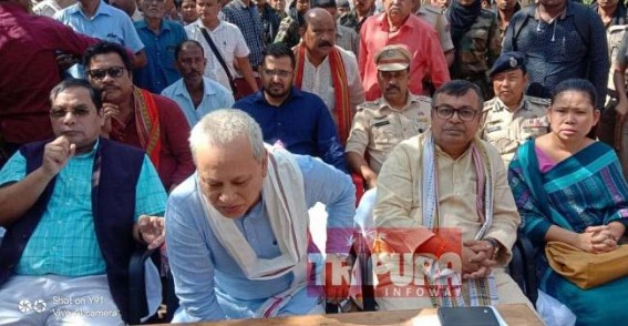 AGARTALA, Nov 7 (TIWN): After nationwide condemnation, on Day-8 of Bru led massive road blockade followed by deaths of 6 persons and 50 hospitalized, BJP, IPFT leaders today have jointly visited the agitation spot.