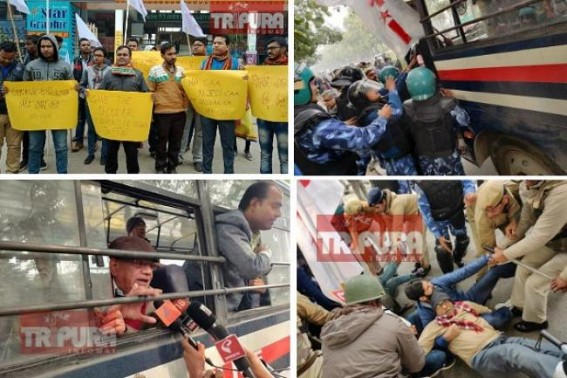 AGARTALA, Dec 19 (TIWN): Alongwith the national level protest Tripura opposition parties have continued to stage protest against Citizenship Amendment Act (CAA). On Thursday SFI, TSU, CPI-M’s students wing held protest after yesterday another protest by Leftist youth wings. The SFI, TSU slammed the Modi Govt and its controversial, unconstitutional new law dividing religions, SFI and TSU also raised voice against the attacks on students and intellectuals who are joining in protest. Tripura Gana Mukti Parishad (GMP) President, ex-MP Jitendra Choudhury has expressed his faith on the highest Court saying, he has full faith in the Court and hopefully, it will listen to the voice of crores of Indians who are fighting against ‘dividing Citizenship Amendment Act’, which has worried now the whole world already. Choudhury mentioned, even though the whole world is concerned about the new divisional law of India, but the Indian Govt has no mind to listen, rather it is going further to make a “Hindu Rastra†in future and thus wants to light the fire for the Hindu Rastra.