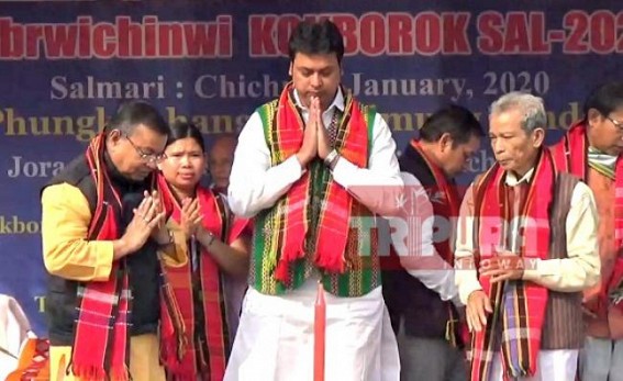 AGARTALA, Jan 19 (TIWN): After renaming Kolkata Port with Shyama Prasad Mukharjee port in Bengal, now Tripura BJP has started renaming of places, which however needs no Central Fund but can buy sentiments at free-of-cost. While addressing on the Kokborok Day, Chief Minister Biplab Deb said that in respect of Kokborok language our Govt has done this and this is the auspicious occasion to announce this when the state is celebrating Kokborok Diwas. IPFT Minister Mebar Jamatia said that total 5 names will be changed and the BJP-IPFT Govt will go through a ‘historical revival’. Mebar Jamatia said, yesterday 5 names were offered in the Cabinet but due to emergency situations and short of time, only one was approved. He thanked Chief Minister Biplab Deb for this saying, more name changes ahead. While addressing media, Biplab Deb praised Central Govt for solving Reang issues at Rs. 600 crores of package, although when the package will be allocated it was not told by him.