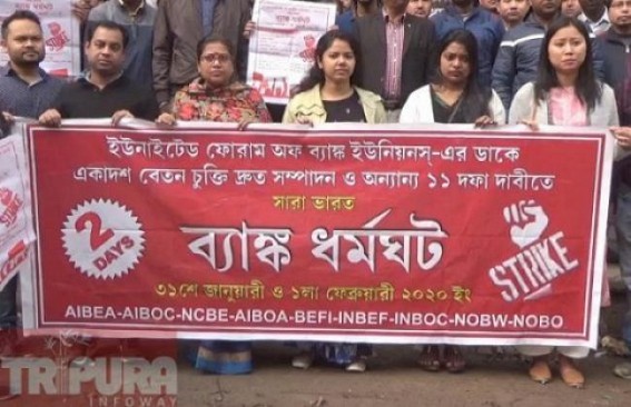 AGARTALA, Feb 28 (TIWN): Bank Employees Federation of India (BEFI) and All India Bank Employees' Association (AIBEA) will hold three-day nation-wide strike over wage hike from March 11-13. This is the third strike call given by the bank employee associations in 2020 so far. Before this, the bank unions held a two-day strike from January 31-February 1 and another one was held to mark Bharat Bandh on January 8.
