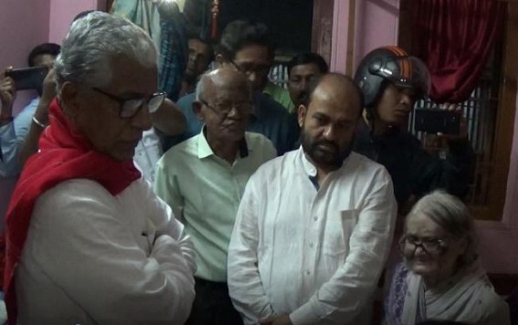 PHOTO : Tripura former CM Manik Sarkar visited died Advocate Bhaskar Debroy's home. TIWN Pic March 8, 2020