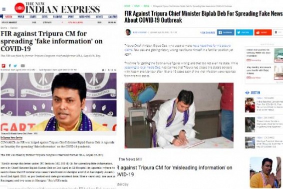 AGARTALA, April 6 (TIWN): Tripura BJP & Biplab Deb's dictatorial style with least regard to Indian Constitution, Democracy, attacking Opposition leader Gopal Roy's house with over 100 Police, CRPF Jawans, 4 OCs, 1 DSP, gross misuse of Police force exposed Biplab Deb's nervousness. Even the national media reported, how Tripura Police “harassed†Congress leader Gopal Roy after he filed FIR against Chief Minister Biplab Deb. National Congress Party has also exceeded full support to Tripura Congress after was being informed about tortures on former MLA Gopal Roy. Various national media’s news headlines on CM led spread COVID-19 rumour came like this : “FIR against Tripura CM for spreading 'fake information' on COVID-19†(The New Indian Express), “Tripura police ‘harasses’ Congress leader for filing FIR against CM Biplab Deb†(The Northeast Now), FIR against Tripura CM for ‘misleading information’ on COVID-19 (The News Mill), “Tripura: Drama over FIR against CM takes suspicious turn after police surround ex-MLA’s residence†(TNT). Like this, various media have reported the same.