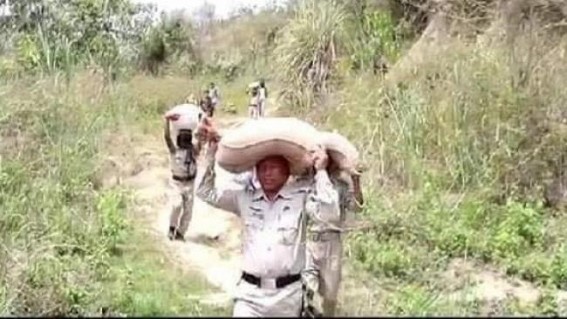 PHOTO : TSR Jawans carrying rice sacks to home to home. Viral photo.