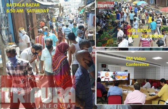 AGARTALA / NEW DELHI, April 11 (TIWN): TIWN Journalists field coverage across various markets exposed failure ot social distancing as unruly public continue to ignore lockdown amid severe risks of COVID19 spread. Today morning Gol Bazar & Battala markets were over-crowded, no sign of enforcement or social distancing was seen. PM Modi advised States to plan for extended lockdown of another 2 weeks as Corona cases across India continue spiking, death toll rose to 242 as total cases cross 7,500 mark.
